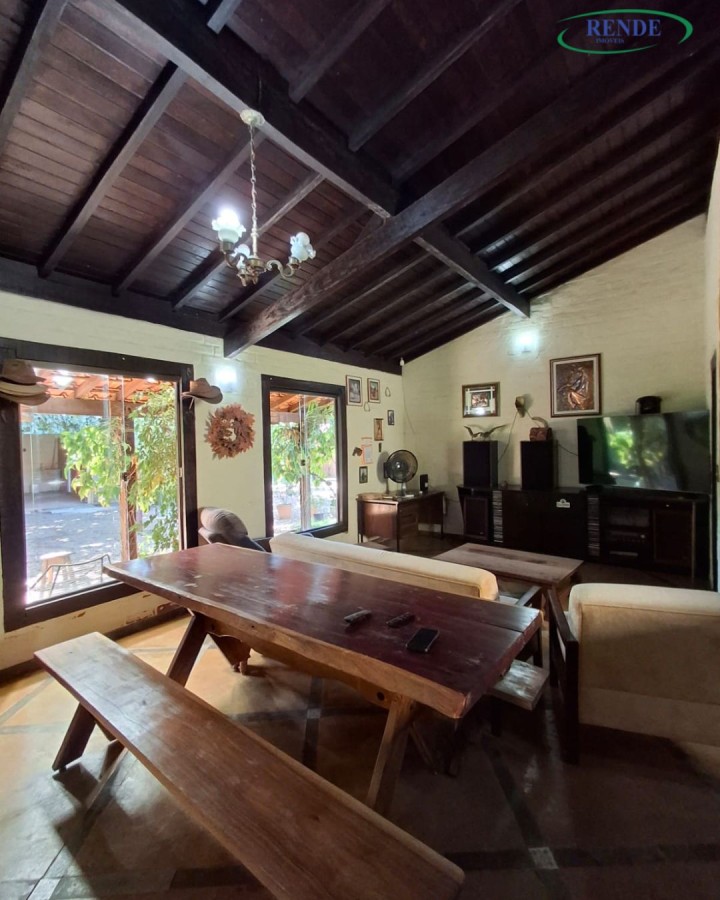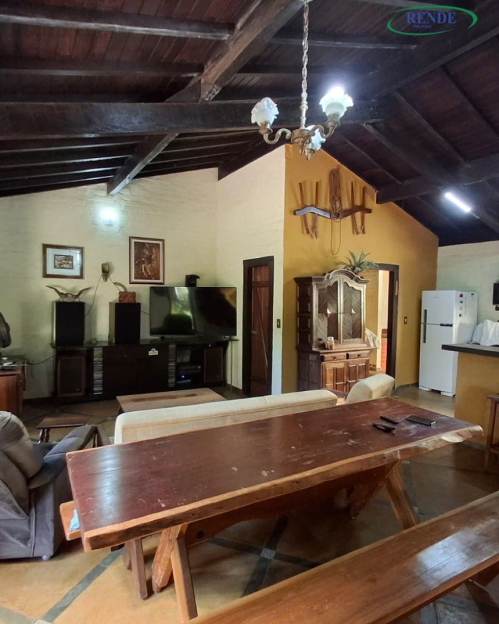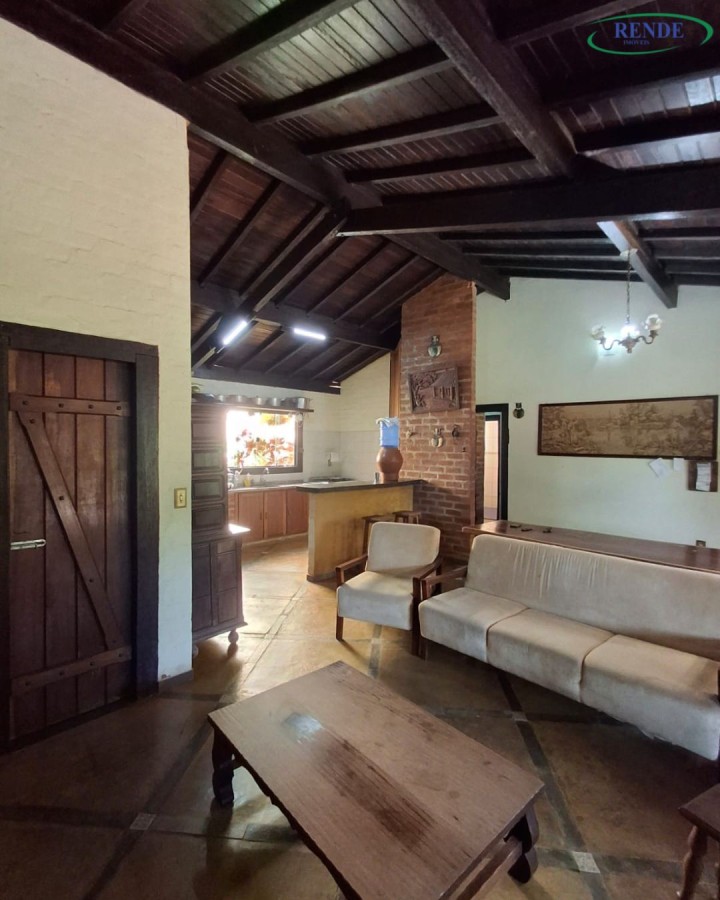 Casa rústica com 1 dormitório com armário planejado, sala e cozinha integradas (cozinha também com armários planejados), 2 banheiros, garagem ampla e um charmoso fogão a lenha.